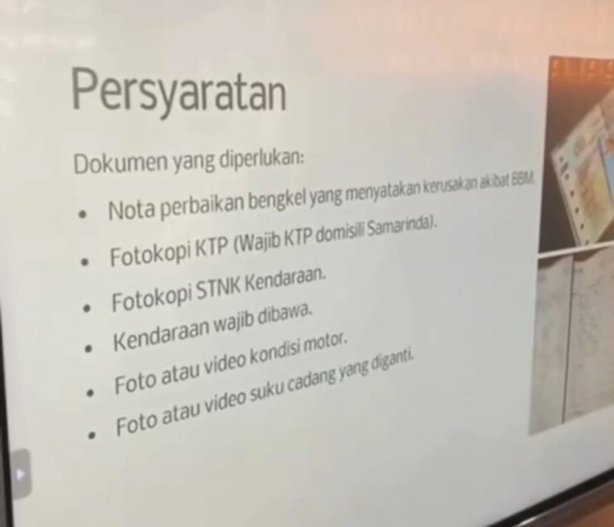 Persyaratan bantuan Pemkot untuk warga Samarinda yang motornya mengalami kerusakan akibat BBM yang tercampur. (Foto : istimewa)
