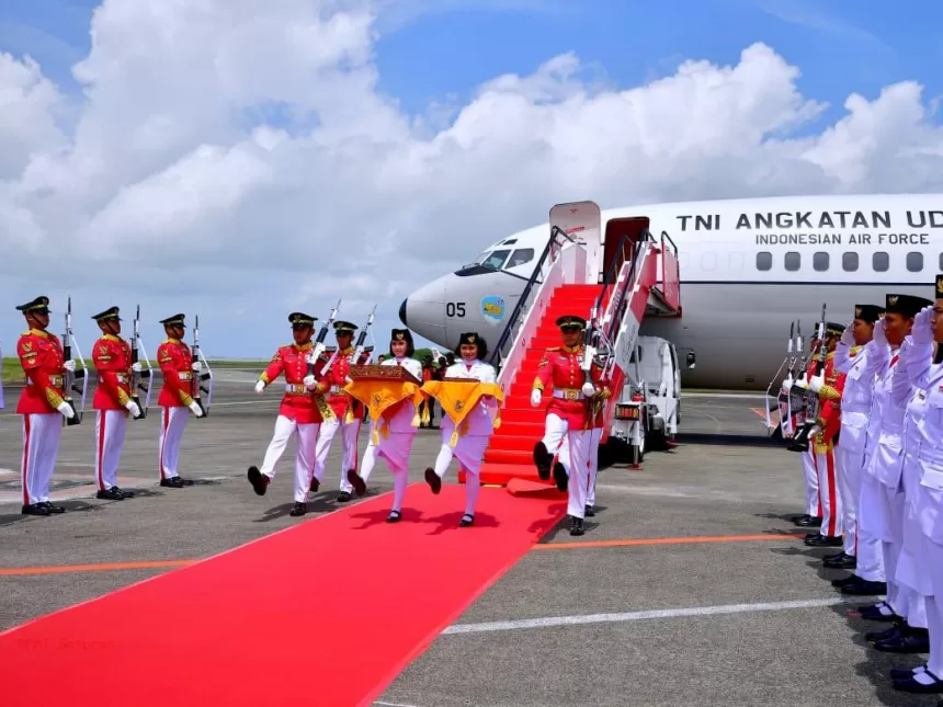 Balikpapan, Sekala.id – Duplikat bendera pusaka Merah Putih dan teks proklamasi telah tiba di Balikpapan, Kalimantan Timur, pada Sabtu (10/8/2024) sekitar pukul 12.55 Wita. Kedua simbol penting kemerdekaan ini dibawa oleh pesawat Boeing TNI AU dalam perjalanan menuju Ibu Kota Nusantara (IKN), menandai sebuah langkah sejarah bagi Indonesia.